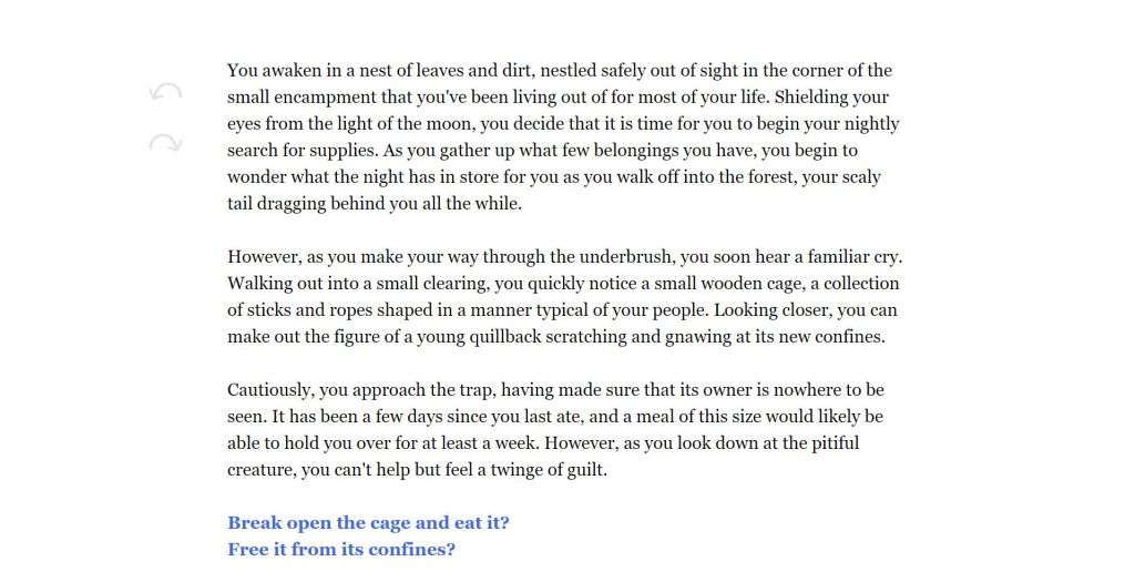 Acolyte is an interactive narrative game in which you play as a member of a race of lizard-like humanoids known as the Acaloans. Left to die at an early age, you will be forced to confront the trauma of your past following a chance encounter, with each choice you make bringing you closer and closer to your ultimate purpose.